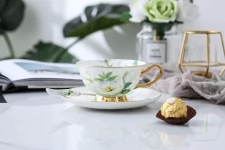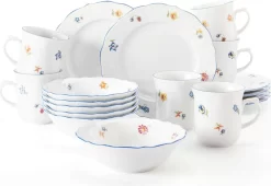Mäser 931609 Kaffeetassen-Set Derby Für 4 Personen, Porzellan, Weiß/hellblau/beige (1 Set, 8-teilig)